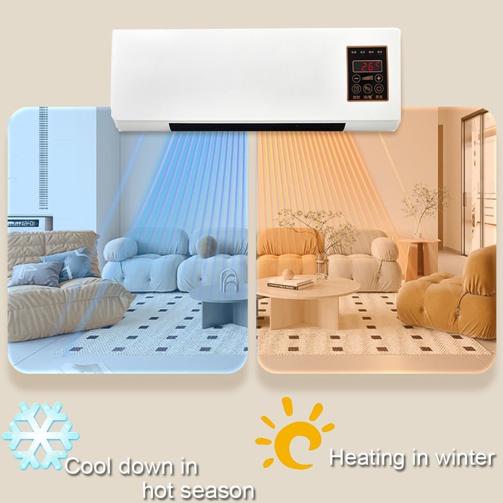 Mini ventilator montat pe perete pentru racire si incalzire. Ventilator de aer cu telecomanda, ventilator mic pentru aer conditionat, combo portabil de 1500 W AC cu montare pe perete.