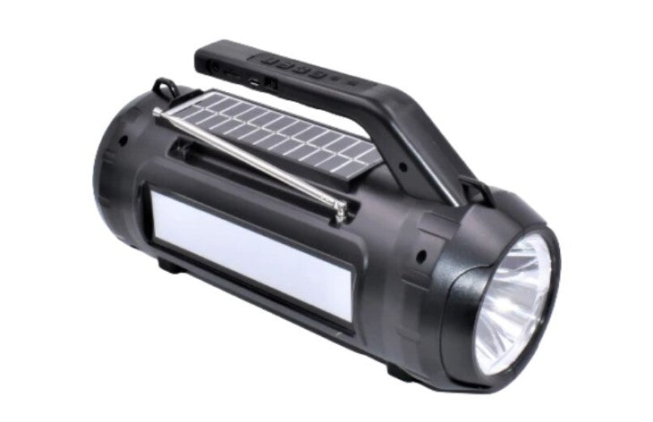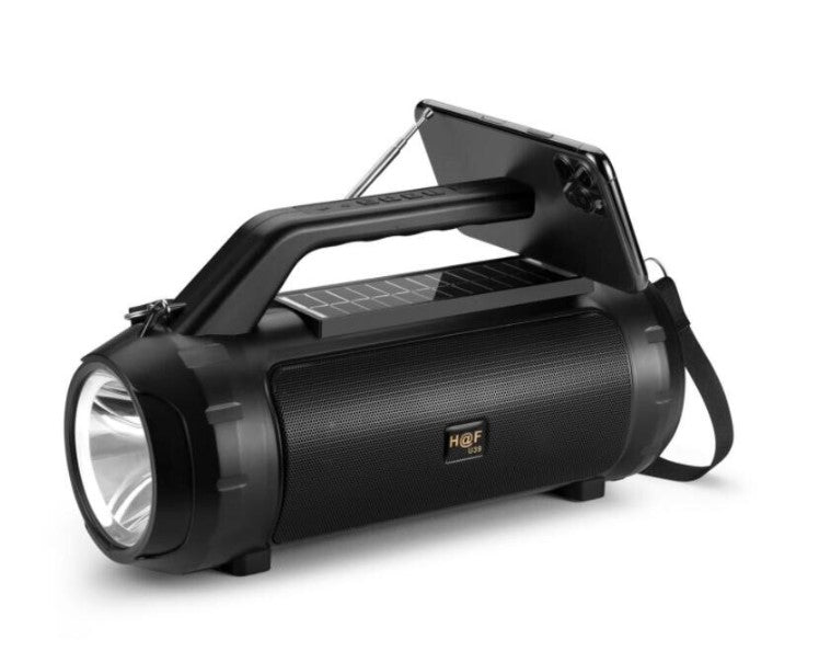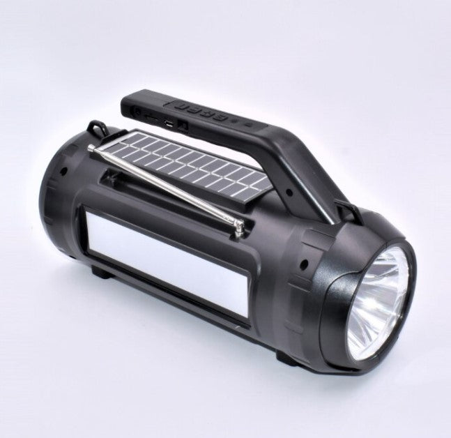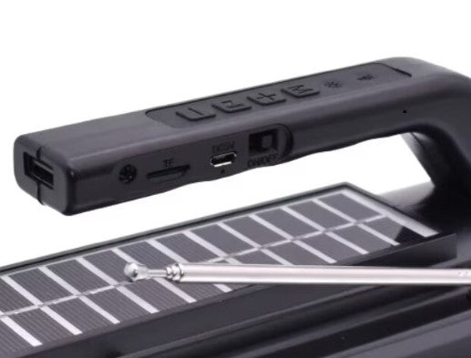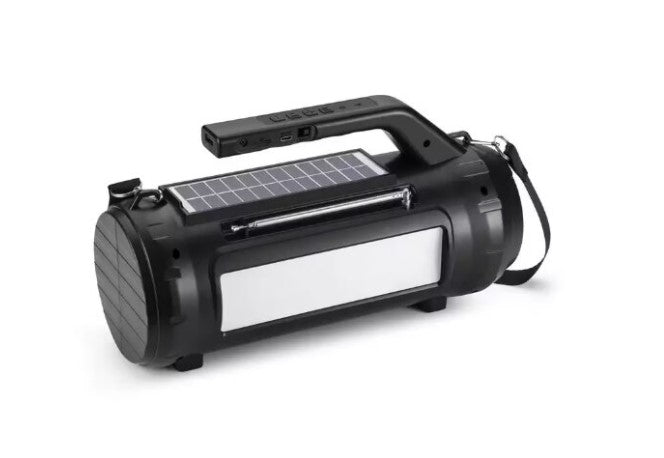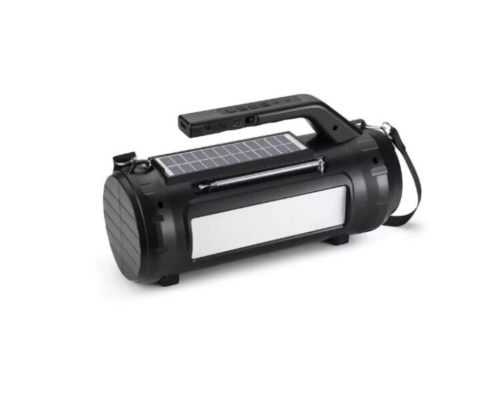 1x Boxa portabila multifunctionala, Lanterna COB + lanterna laterala, Alimantare solara, reincarcabila, Bluretooth, Radio, Port USB, Cititor card, Suport de telefon incorporat
