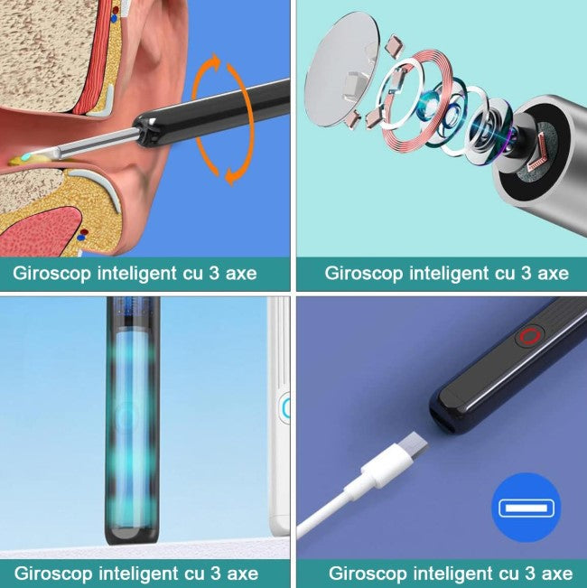Endoscopul urechii adopta un design all-in-one, va puteti conecta camera instrumentului de indepartare a cerumei prin , poate functiona bine cu sistemele iOS si Android, echipat cu un giroscop cu trei axe, poate oferi o transmisie blanda a imaginii. si ajuta la operatiunile de curatare a urechilor