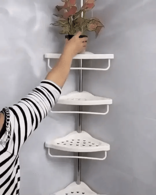 Raftul de dus poate fi instalat rapid si usor folosind sistemul de conectare si tija telescopica.