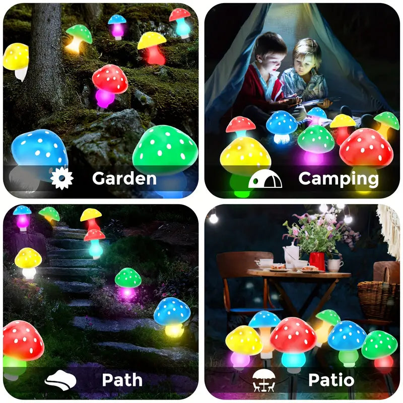 Diferitele moduri de iluminare aduc stari de spirit diferite, vii si atragatoare, acesti tarusi draguti de ciuperci fac ca paturile de flori din gradina sa prinda viata, dragute si unice. Alimentate cu energie solara, economisind energie si ecologice, fara facturi de electricitate, absorb energia solara in timpul zilei si decoreaza-ti gradina noaptea. In zilele insorite, poate dura mult timp, aproape toata noaptea.