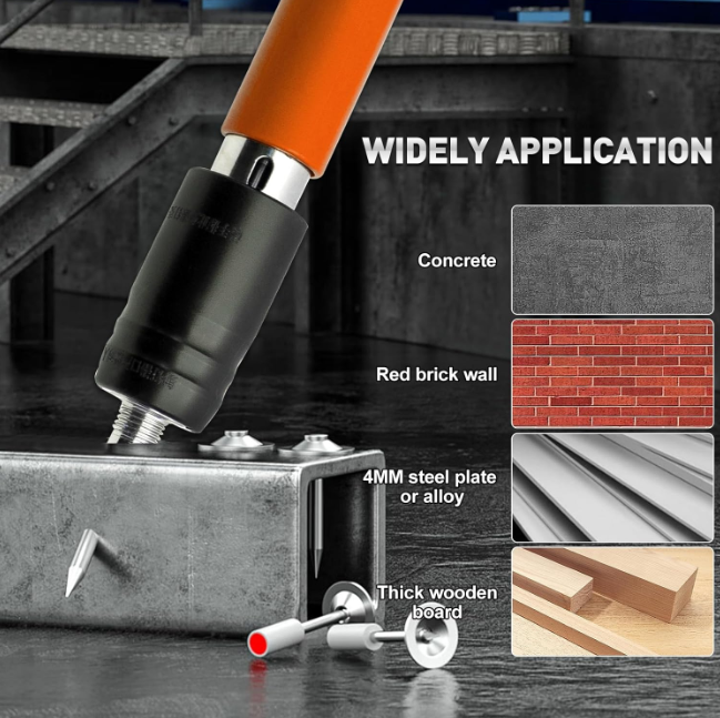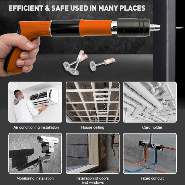 Acest instrument de fixare cuie pentru perete este potrivit pentru instalarea apei si electricitatii, instalarea cutiilor pentru fire, fixarea canalelor si a conductelor pentru fire, fixarea usilor si ferestrelor, instalarea liftului pentru apa, luminile solare, etc.