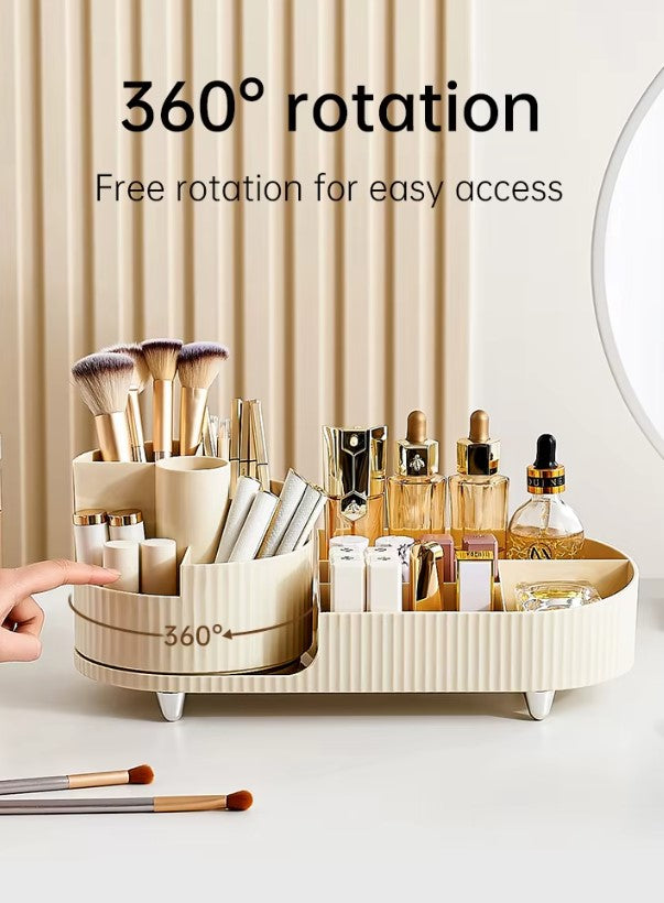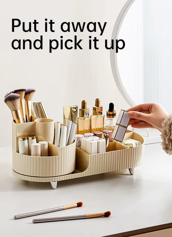 Organizatorul are un design ergonomic, conceput pentru a va permite sa depozitati si sa accesati usor produsele cosmetice fara a ocupa prea mult spatiu. Organizatorul vine cu multiple compartimente de diferite dimensiuni si forme, ceea ce va permite sa stocati o varietate de produse cosmetice, cum ar fi rujuri, farduri, pensule, palete de farduri, rimeluri si multe altele.