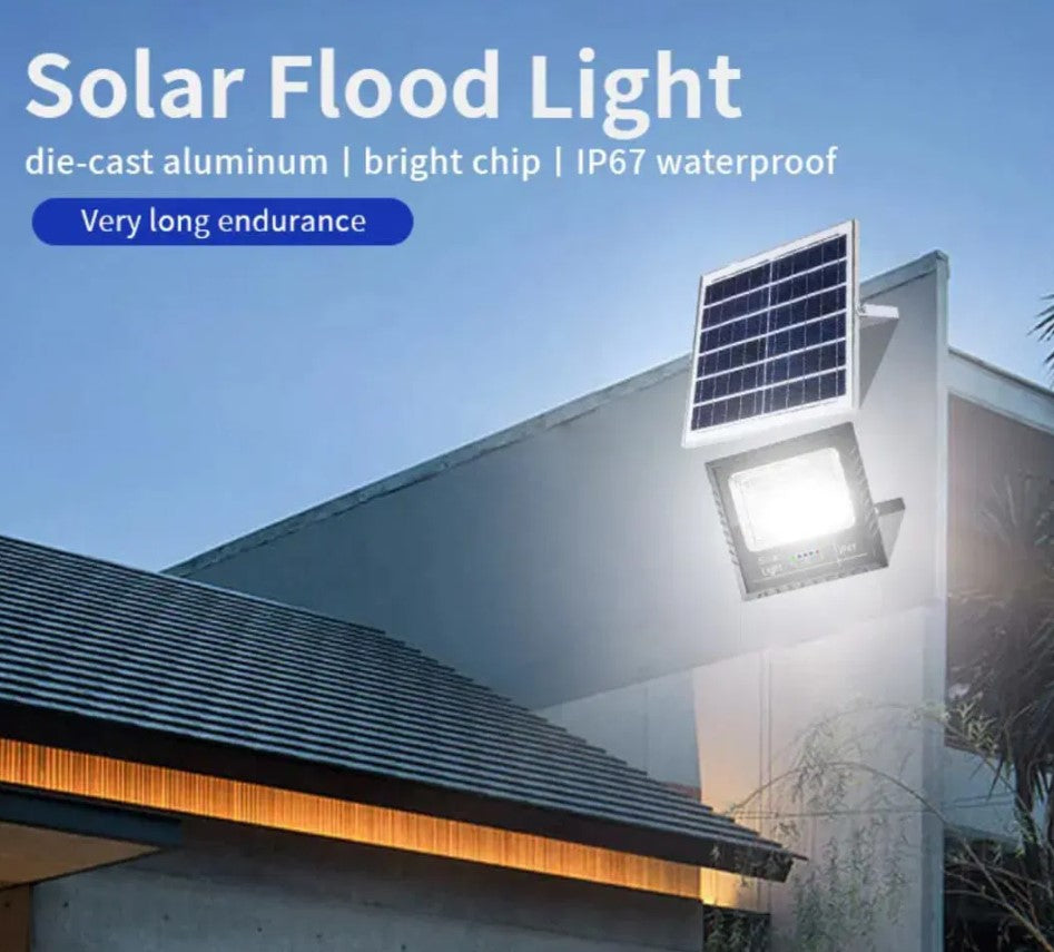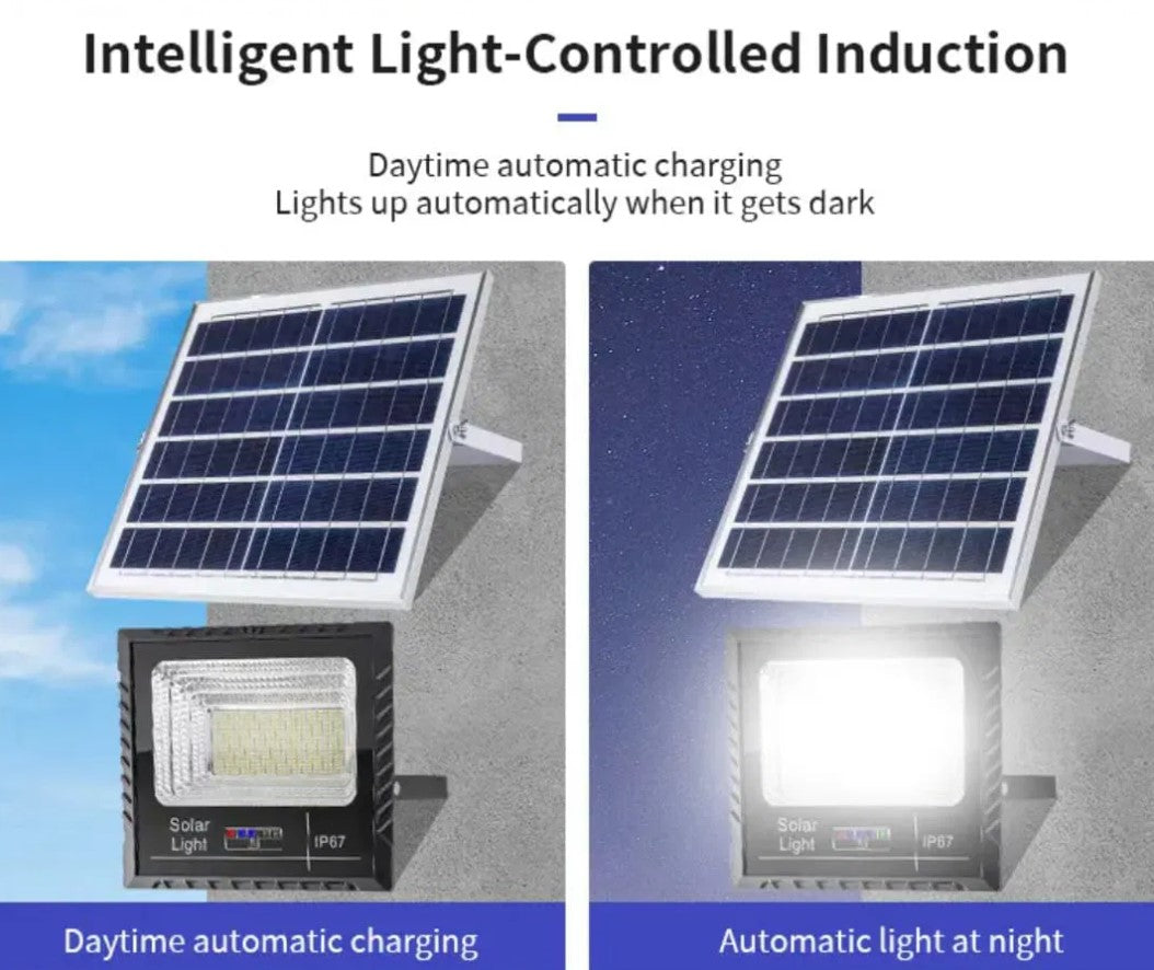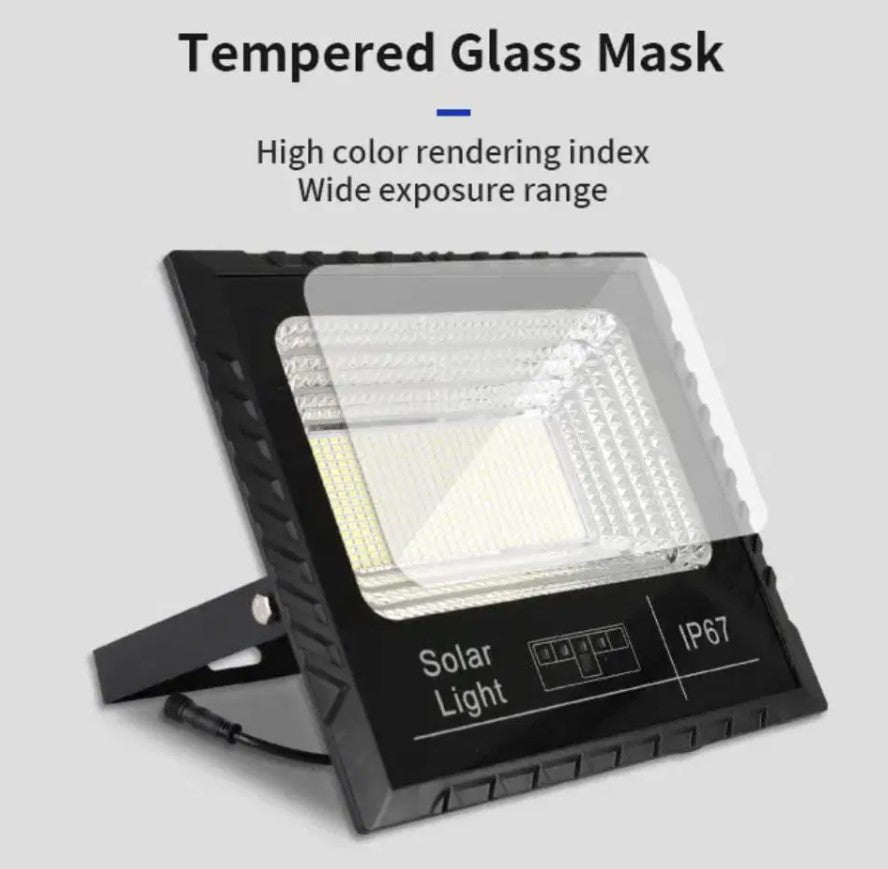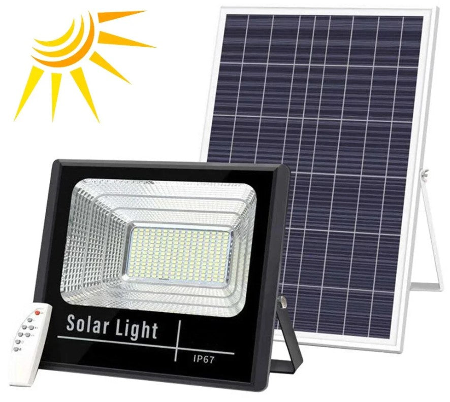 Proiector JORTAN LED 100W cu panou solar si telecomanda, IP66