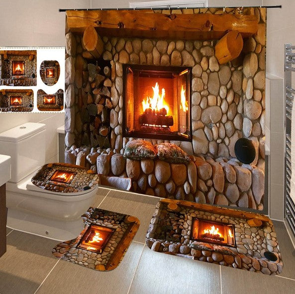 Perdeaua de dus este realizata din poliester 100%, este rezistenta la apa, uscare rapida si igienica. Covorul de baie tip U/U este realizat din flanel, moale, durabil, inodor si sigur.