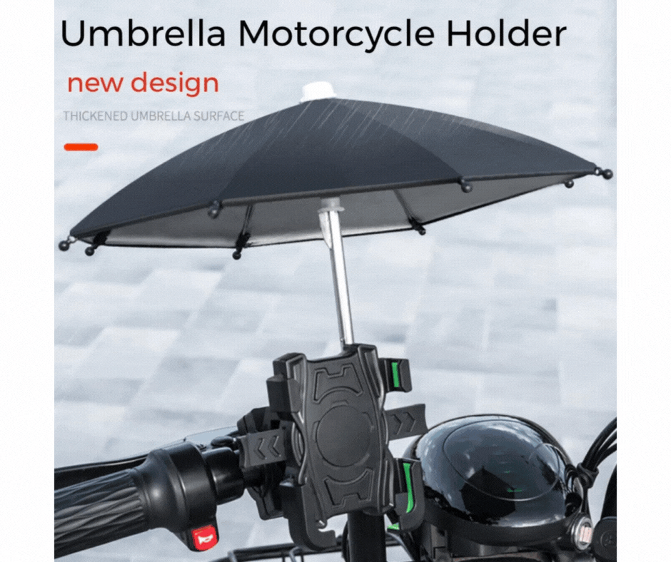 Suportul nostru pentru telefoane vine cu o umbrelă mică. Poate bloca ploaia , vantul și soarele. Poate fi folosit atunci când plouă și umbrela poate fi îndepărtată atunci când nu este necesara.